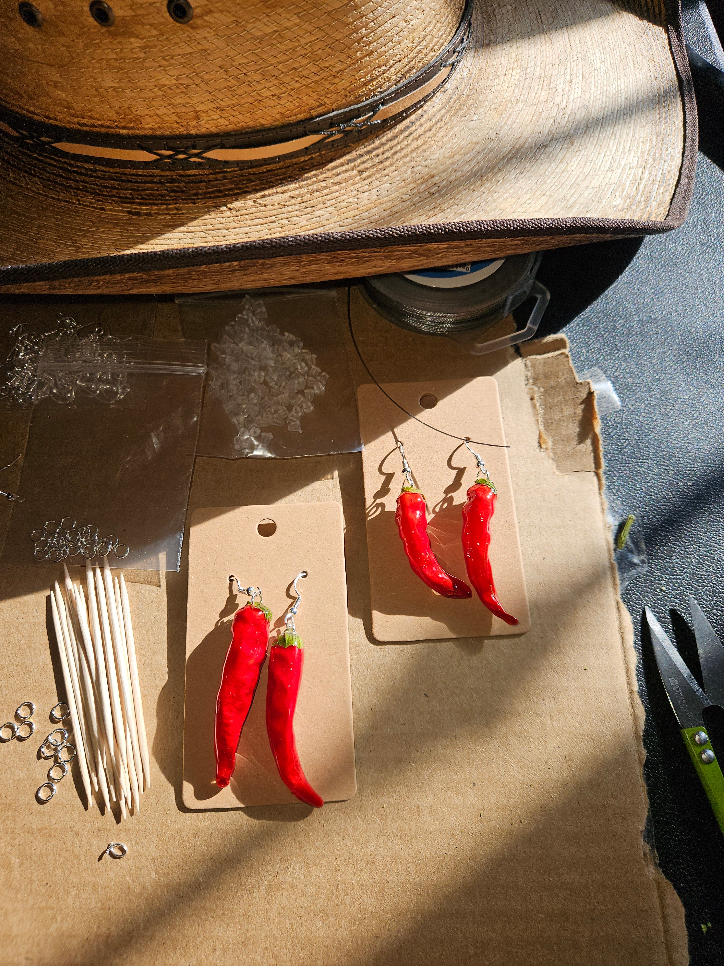 These unique earrings combine natural homegrown cayenne peppers with modern resin preservation techniques, creating a durable and visually striking accessory. Each pepper is carefully dried and sealed in protective resin, maintaining its vibrant appearance and botanical character through extended wear. The 925 sterling silver hypoallergenic hooks ensure comfort for all skin types, eliminating sensitivity concerns. Handcrafted with care by artisan and family collaborator, these earrings represent genuine quality and thoughtful design for those seeking distinctive, meaningful jewelry.